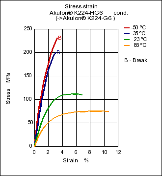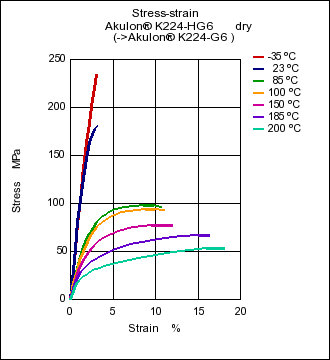 Grafici di rappresentazione del materiale PA 6 ( poliammide 6 ) fibra vetro HB