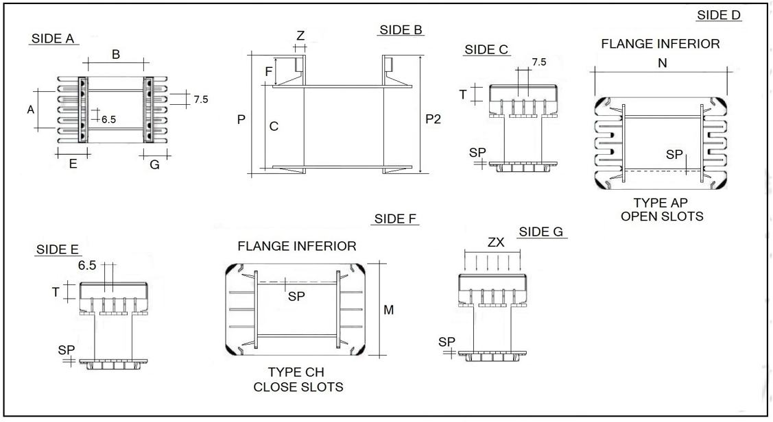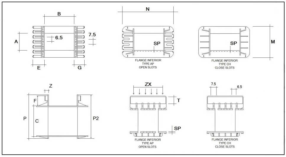 TYPE AP open slots version flange inferior and TYPE CH close slots version flange inferior