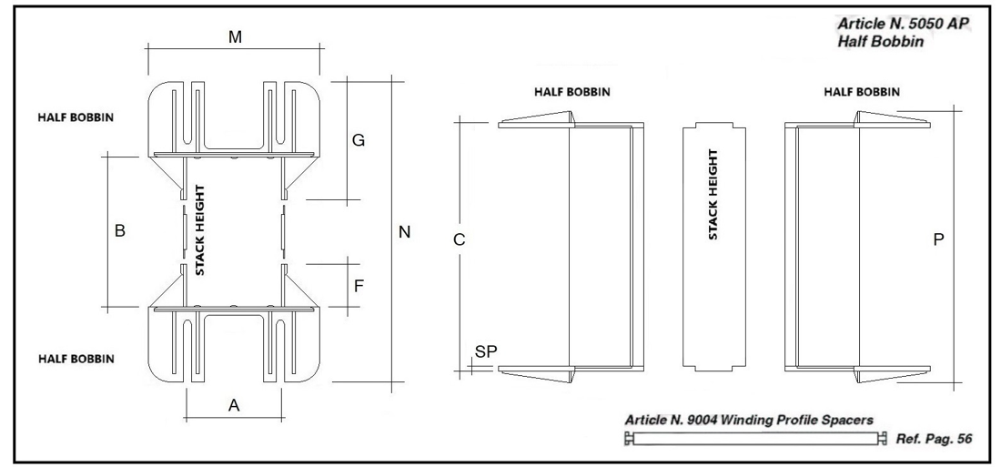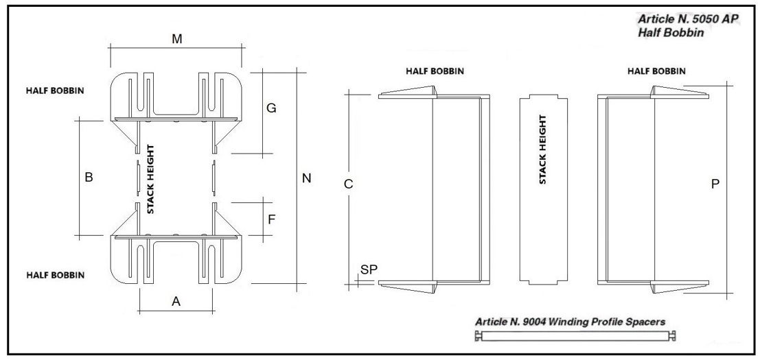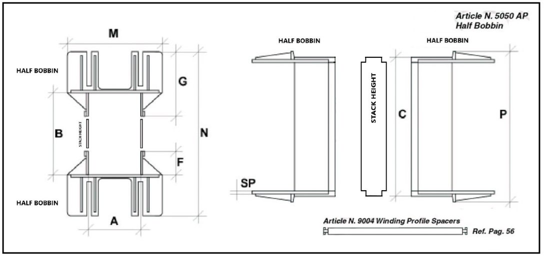 The articles " UI 240 MODULAR SYSTEM" are the result of assembly of half bobbins and stack heights. To view the detail click on TABLE 3 or download the PAGE UI 240 AP