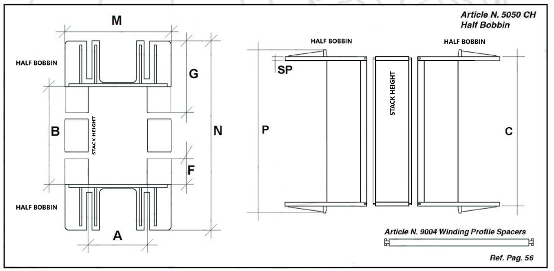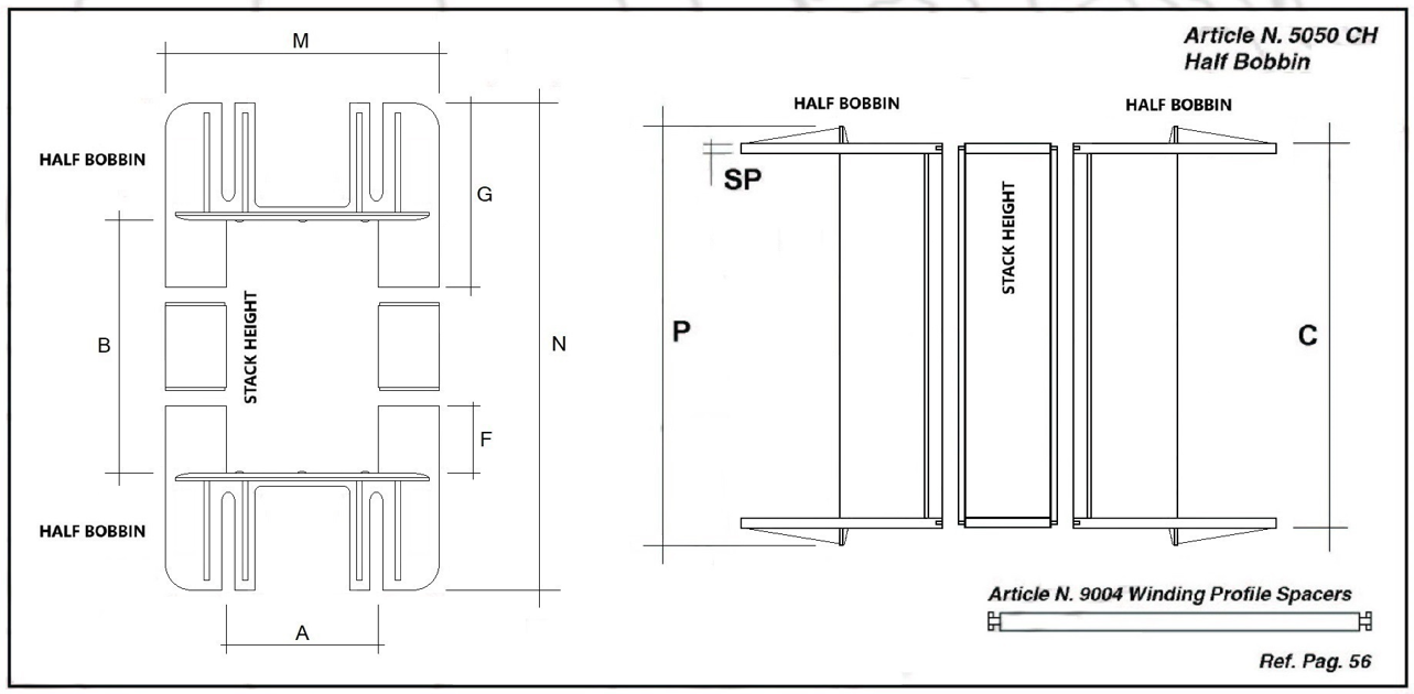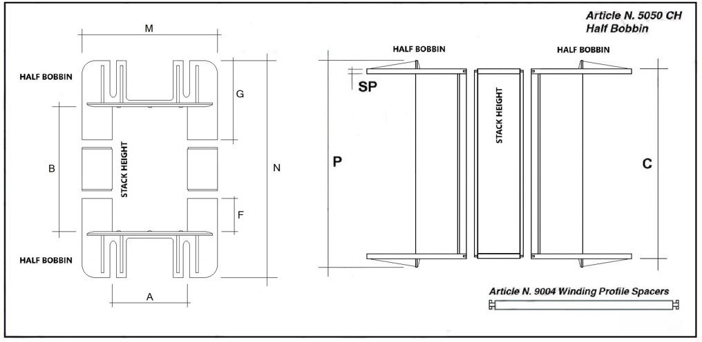 The articles " UI 240 MODULAR SYSTEM" are the result of assembly of half bobbins and stack heights. To view the detail click on TABLE 3 or download the PAGE UI 240 CH