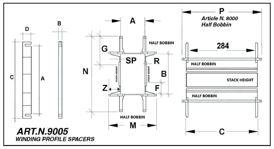 The articles " UI 300 MODULAR SYSTEM" are the result of assembly of half bobbins and stack heights. To view the detail click on TABLE 4 or download the PAGE UI 300